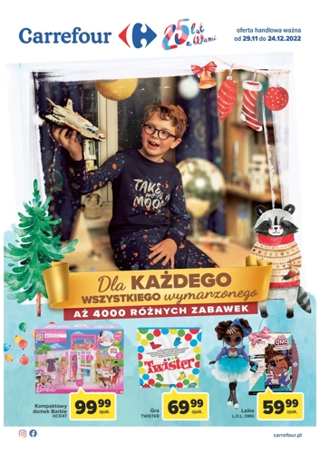 ’Dla każdego wszystkiego wymarzonego. Aż 4000 różnych zabawek’ – nowa gazetka promocyjna sieci marketów Carrefour.