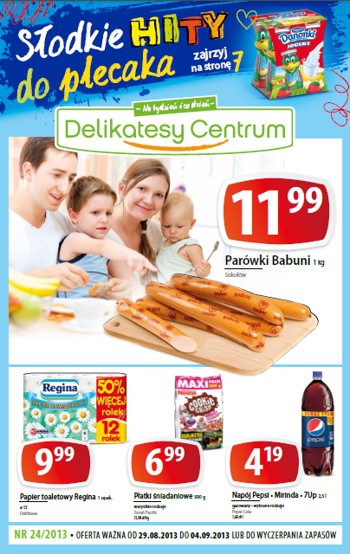 Nowa gazetka promocyjna Delikatesów Centrum – „Słodkie hity do plecaka”.