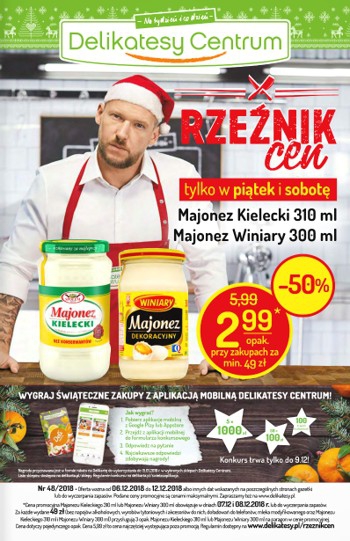 * – cena obowiązuje przy zakupach za min. 49 zł. Cena promocyjna obowiązuje w dniach 7 i 8 grudnia 2018 r. lub do wyczerpania zapasów. By móc skorzystać z promocji, należy zrobić zakupy za min. 49 zł (bez napojów alkoholowych, wyrobów tytoniowych, doładowań do telefonów, mleka modyfikowanego oraz papryki czerwonej). Podane ceny promocyjne są cenami maksymalnymi. Maksymalnie 3 opakowania na paragon.