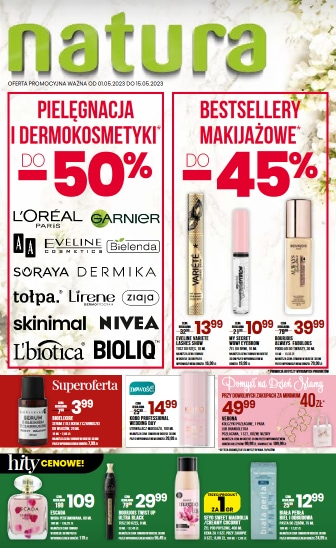 Ceny zawarte w gazetce promocyjnej obowiązują według dat wskazanych w gazetce lub do wyczerpania zapasów. Wszystkie ceny zamieszczone w gazetce promocyjnej drogerii Natura są cenami wyrażonymi w walucie polskiej i zawierają podatek VAT. Promocje z gazetki Natura są dostępne w wybranych drogeriach na terenie całej Polski i nie dotyczą oferty drogerii internetowej. Adresy najbliższej drogerii Natura znajdziesz na stronie internetowej.
