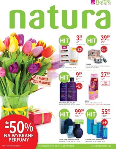 Nowa gazetka promocyjna Drogerii Natura ważna od 28.02 do 13.03, a w niej do -50% na wybrane perfumy oraz wyprzedaż do -80% (produkty z czerwoną etykietą).