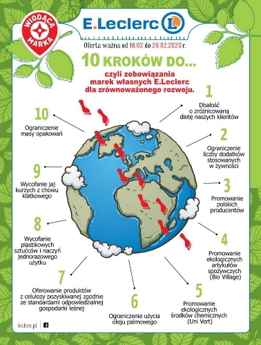 ’10 kroków do… czyli zobowiązania marek własnych E.Leclerc dla zrównoważonego rozwoju’ – nowa gazetka promocyjna sieci handlowej E.Leclerc.