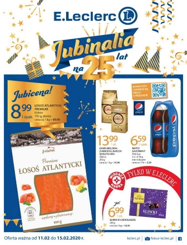 ’Jubinalia na 25 lat. Tylko teraz 25 produktów w jubileuszowej cenie!’ – nowa gazetka promocyjna sieci handlowej E.Leclerc.