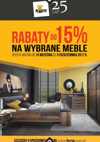Nowa gazetka promocyjna sieci sklepów meblowych Forte – „Rabaty do 15% na wybrane meble”.