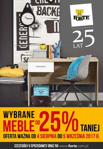 Nowa gazetka promocyjna sieci sklepów meblowych Forte – „Wybrane meble 25% taniej”.