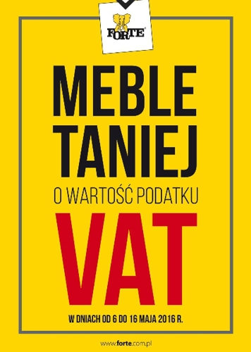 Nowa gazetka promocyjna Forte – „Meble taniej o wartość podatku VAT”.