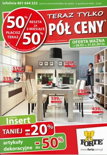 Nowa gazetka promocyjna Forte – „50% płacisz teraz, reszta za 3 miesiące”.