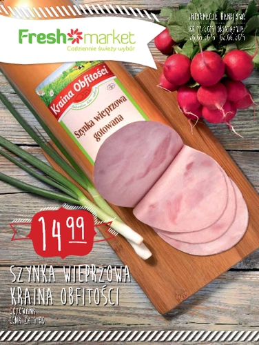 - Szynka wieprzowa gotowana Kraina Obfitości 1 kg – 14,99 zł.