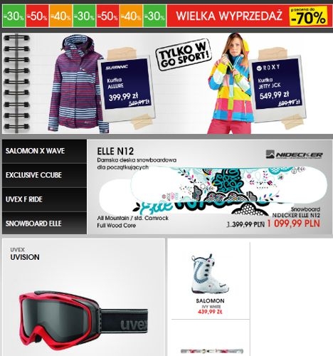Katalog GO SPORT – Zima 2012/13. W ofercie m.in. odzież oraz sprzęt narciarski i snowboardowy, a także sprzęt turystyczny.