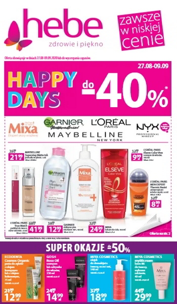 ’Happy Days do -40%’ – nowa gazetka promocyjna drogerii Hebe.