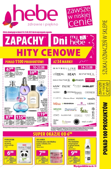 ’Hity cenowe. Ponad 1100 produktów i aż 34 marki!’ – nowa gazetka promocyjna drogerii Hebe.