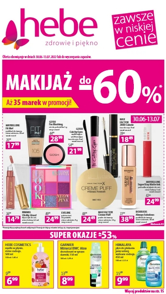 ’Makijaż do -60%. Aż 35 marek w promocji!’ – nowa gazetka promocyjna drogerii Hebe.
