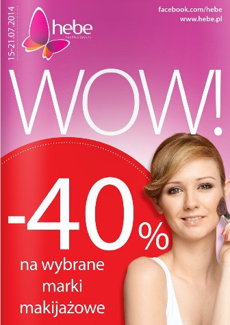Nowa gazetka promocyjna drogerii Hebe – „-40% na wybrane marki makijażowe”.