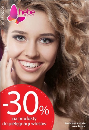 Nowa gazetka promocyjna drogerii Hebe – „-30% na produkty do pielęgnacji włosów”.