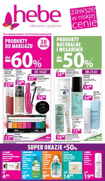 ’Produkty do makijażu do -60% taniej’ – nowa gazetka promocyjna drogerii Hebe.