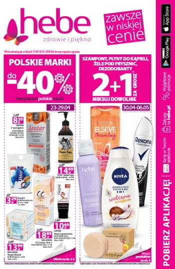 ’Polskie marki do -40%’ – nowa gazetka promocyjna drogerii Hebe.
