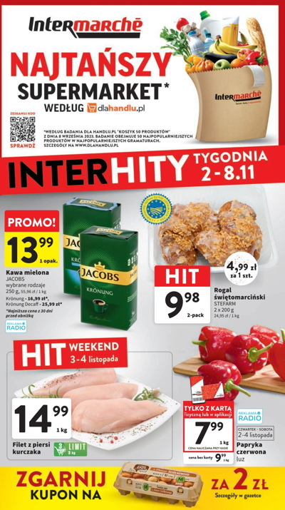 Oferta promocyjna nr 44/2023 ważna w dniach wskazanych na stronach lub do wyczerpania zapasu. Sklepy w których obowiązuje promocja gazetkowa dostępne na stronie internetowej sieci sklepów Intermarche. Sprzedaż wyłącznie detaliczna. Ceny zawierają podatek VAT. Ze względu na franczyzowy charakter sieci Intermarche, lokalnie ceny w sklepach mogą się różnić. Zdjęcia i wygląd towarów w gazetce mogą nieznacznie odbiegać od rzeczywistości.