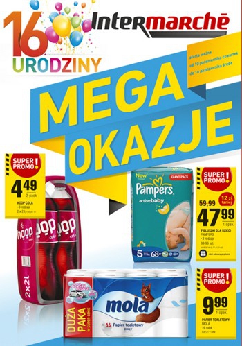 Nowa gazetka promocyjna sieci handlowej Intermarche – „16 urodziny Intermarche – Mega okazje”.