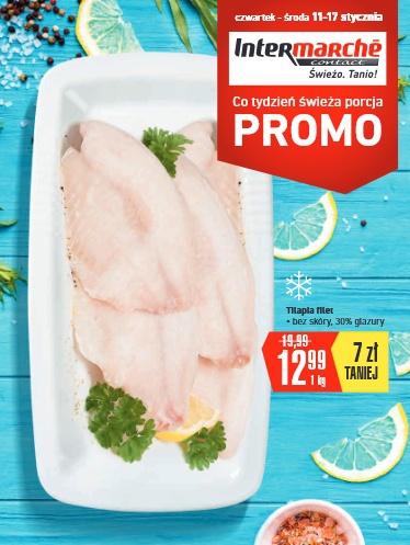 Tilapia filet bez skóry 1 kg – 12,99 zł.
