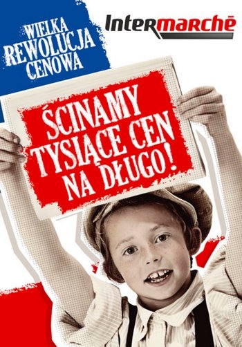 Aktualna gazetka promocyjna sieci handlowej Intermarche – „Wielka rewolucja cenowa! Ścinamy ceny na długo!”.