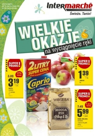 Najnowsza gazetka promocyjna sieci handlowej Intermarche – „Wielkie okazje na wyciągnięcie ręki”.