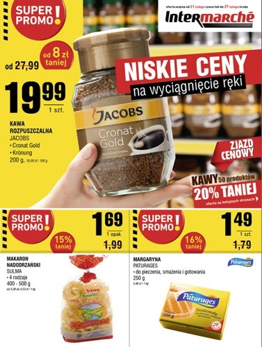 Najnowsza gazetka promocyjna sieci handlowej Intermarche – „Niskie ceny na wyciągnięcie ręki”. Oferta ważna od od 21.02 do 27.02 lub do wyczerpania asortymentu.
