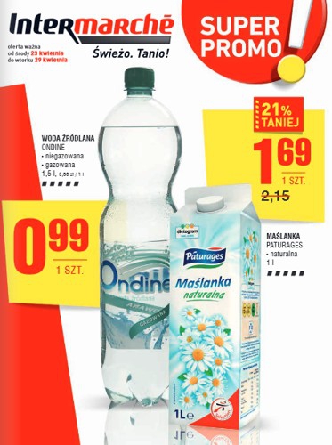 - Woda źródlana Ondine 1,5 L – 0,99 zł.