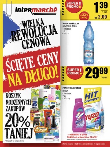 Nowa gazetka promocyjna sieci handlowej Intermarche – „Wielka rewolucja cenowa. Ścięte ceny na długo!”.