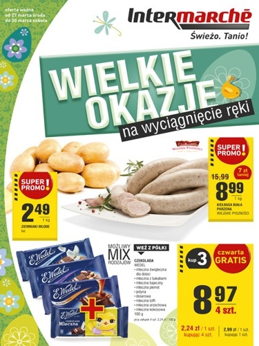 Najnowsza gazetka promocyjna sieci handlowej Intermarche – „Wielkie okazje na wyciągnięcie ręki”.