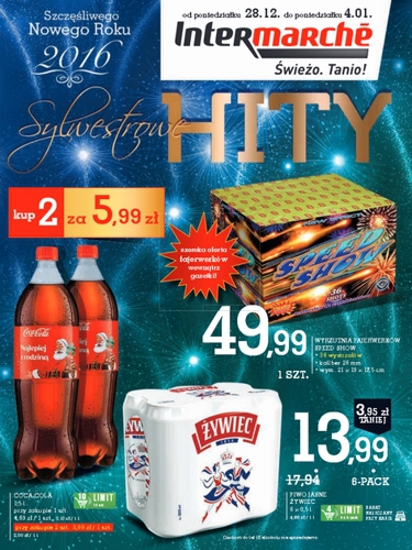 Nowa gazetka promocyjna sieci handlowej Intermarche – „Sylwestrowe hity”.