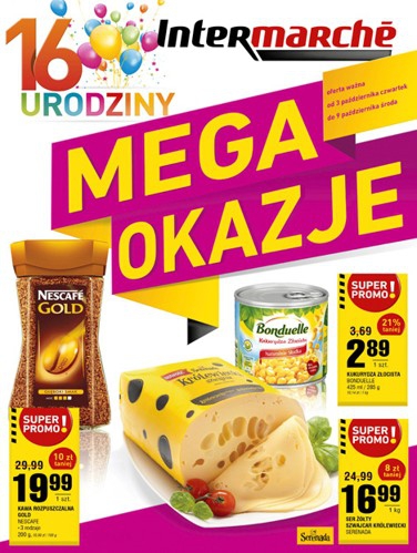 Nowa gazetka promocyjna sieci handlowej Intermarche – „16 urodziny Intermarche – Mega okazje”.