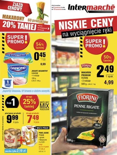 Najnowsza gazetka promocyjna sieci handlowej Intermarche – „Niskie ceny na wyciągnięcie ręki”.