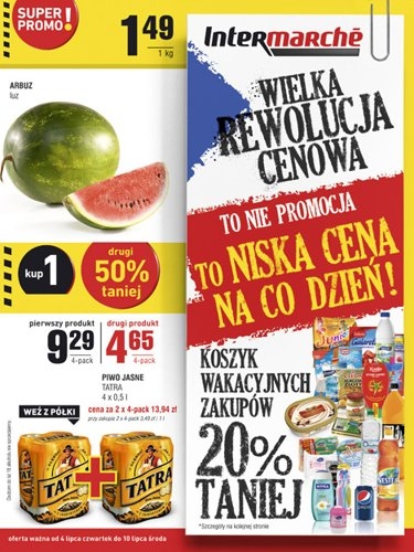Aktualna gazetka promocyjna sieci handlowej Intermarche – „Wielka rewolucja cenowa. To nie promocja to niska cena na co dzień!”.