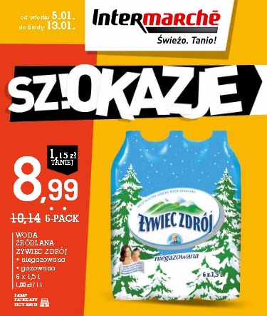 - Woda źródlana Żywiec Zdrój 6×1,5 L – 8,99 zł.