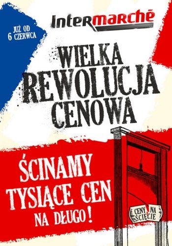 Nowa gazetka promocyjna sieci handlowej Intermarche – „Wielka rewolucja cenowa! Ścinamy ceny na długo!”.