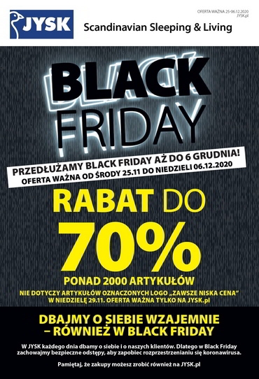’Black Friday’ – nowa gazetka promocyjna sieci sklepów JYSK.