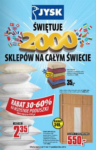 W JYSKU znajdziesz wszystko czego potrzebujesz do łazienki , sypialni , pokoju dziennego , biura oraz ogrodu . Od 11.10 obowiązuje nowa oferta promocyjna.