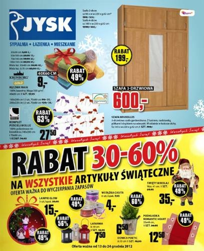 W JYSKU znajdziesz wszystko czego potrzebujesz do łazienki , sypialni , pokoju dziennego , biura oraz ogrodu . Od 13.12 do 24.12 obowiązuje nowa oferta promocyjna.