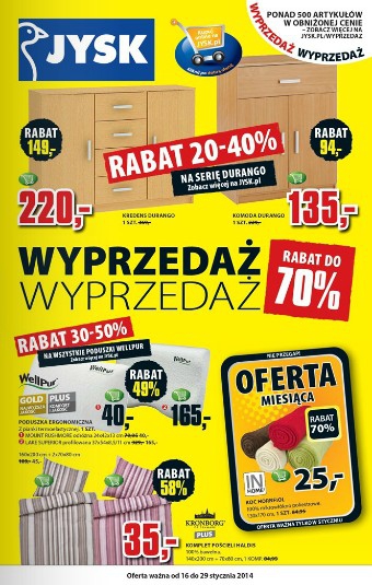 Nowa gazetka promocyjna JYSK – „Wyprzedaż – rabat do 70%”.