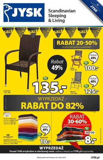 Nowa gazetka promocyjna JYSK – „Wyprzedaż – rabat do 82%”.