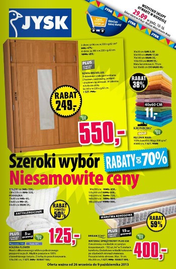 Nowa gazetka promocyjna JYSK – „Szeroki wybór, niesamowite ceny”.