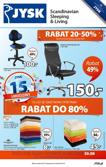Nowa gazetka promocyjna JYSK – „15 lat ze świetnymi ofertami”.