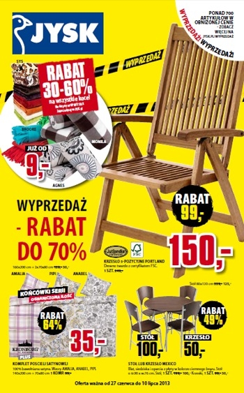 Aktualna gazetka promocyjna JYSK – „Wyprzedaż – rabat do 70%”.