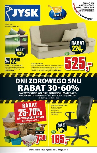 Nowa gazetka promocyjna JYSK – „Dni zdrowego snu – rabat 30-60% na wszystkie kołdry, poduszki i materace”.