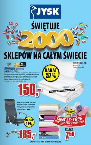 W JYSKU znajdziesz wszystko czego potrzebujesz do łazienki , sypialni , pokoju dziennego , biura oraz ogrodu . Od 08.11 obowiązuje nowa oferta promocyjna.