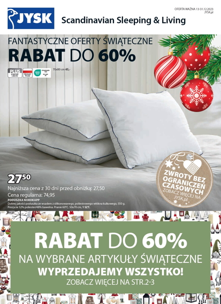 ’Fantastyczne oferty świąteczne. Rabat do 60%’ – nowa gazetka promocyjna sieci sklepów JYSK.
