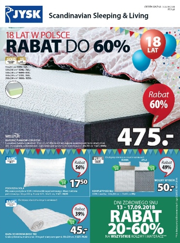 ’18 lat w Polsce. Rabat do 60%’ – nowa gazetka promocyjna sieci sklepów JYSK.