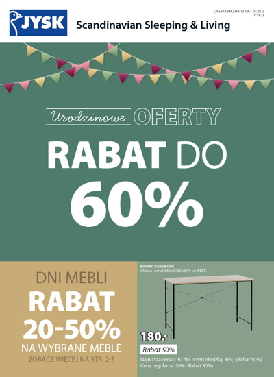’Urodzinowe oferty. Rabat do 60%’ – nowa gazetka promocyjna sieci sklepów JYSK.