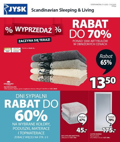 ’Wyprzedaż zaczyna się teraz’ – nowa gazetka promocyjna sieci sklepów JYSK. Ponad 1000 artykułów w obniżonych cenach z rabatem do 70%.