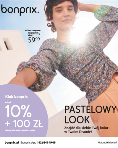 Aktualny katalog Bon Prix 'Pastelowy look” liczy 100 stron, na których przeważają oczywiście artykuły dla kobiet, ale znalazło się w nim miejsce również na produkty dla mężczyzn, a nawet lampy solarne.